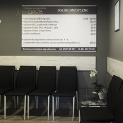 W poradni przeprowadzana jest diagnostyka i leczenie schorzeń układu sercowo – naczyniowego (niewydolność serca, choroba wieńcowa, nadciśnienie tętnicze, zaburzenia rytmu serca, diagnostyka zasłabnięć, wstępna diagnostyka schorzeń internistycznych).